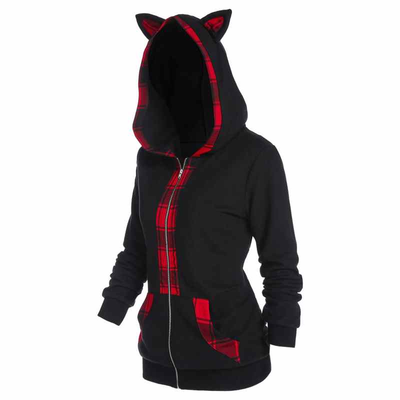Fashion Cat Ear Hooded Jacket Coat Casual Sweatshirt Pockets Zipper Coat Streetwear Female Winter Long Sleeve Womens Outerwear