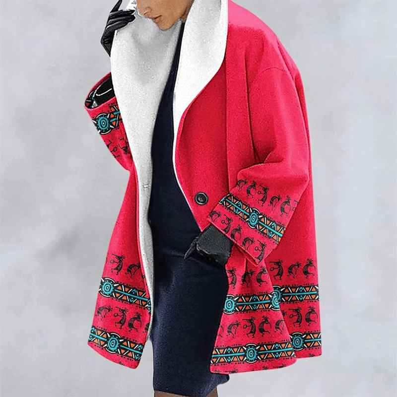 Autumn Women’s Casual Coat Button Up Long Sleeve Jackets With Hood Multicolor Retro Printed Coat For Women casaco feminino