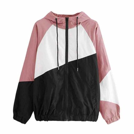 Womens Winter Autumn Long sleeved Hooded Zipper Stitching Contrast Color Windbreaker Coat Basic Jackets For Lady Chaquetas